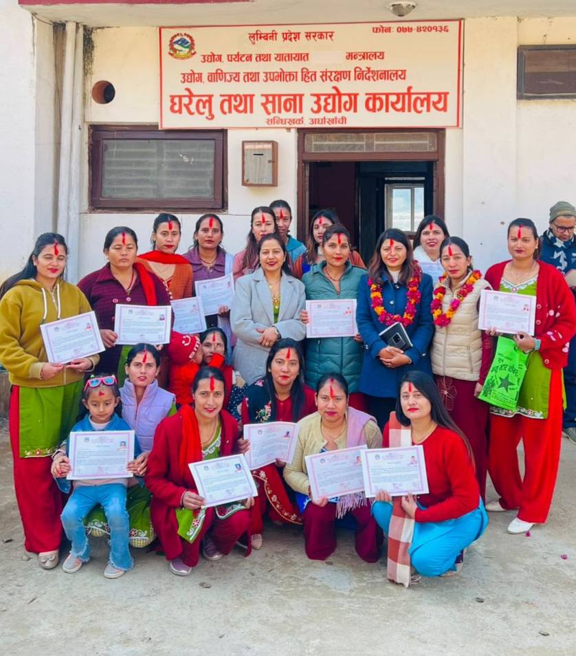 घरेलु तथा साना उद्योग कार्यालय अर्घाखाँचीको आयोजनामा बुटिकसम्बन्धी सीप विकास तालिम तथा प्रविधिमा सहयोग कार्यक्रम सफलतापूर्वक सन्धिखर्कमा सम्पन्न भएको छ। स्थानीय उद्यमशीलता प्रवद्र्धन गर्ने उद्देश्यले सञ्चालन गरिएको उक्त कार्यक्रममा जिल्लाका विभिन्न पालिकाबाट महिलाहरूको सहभागीता रहेको थियो ।