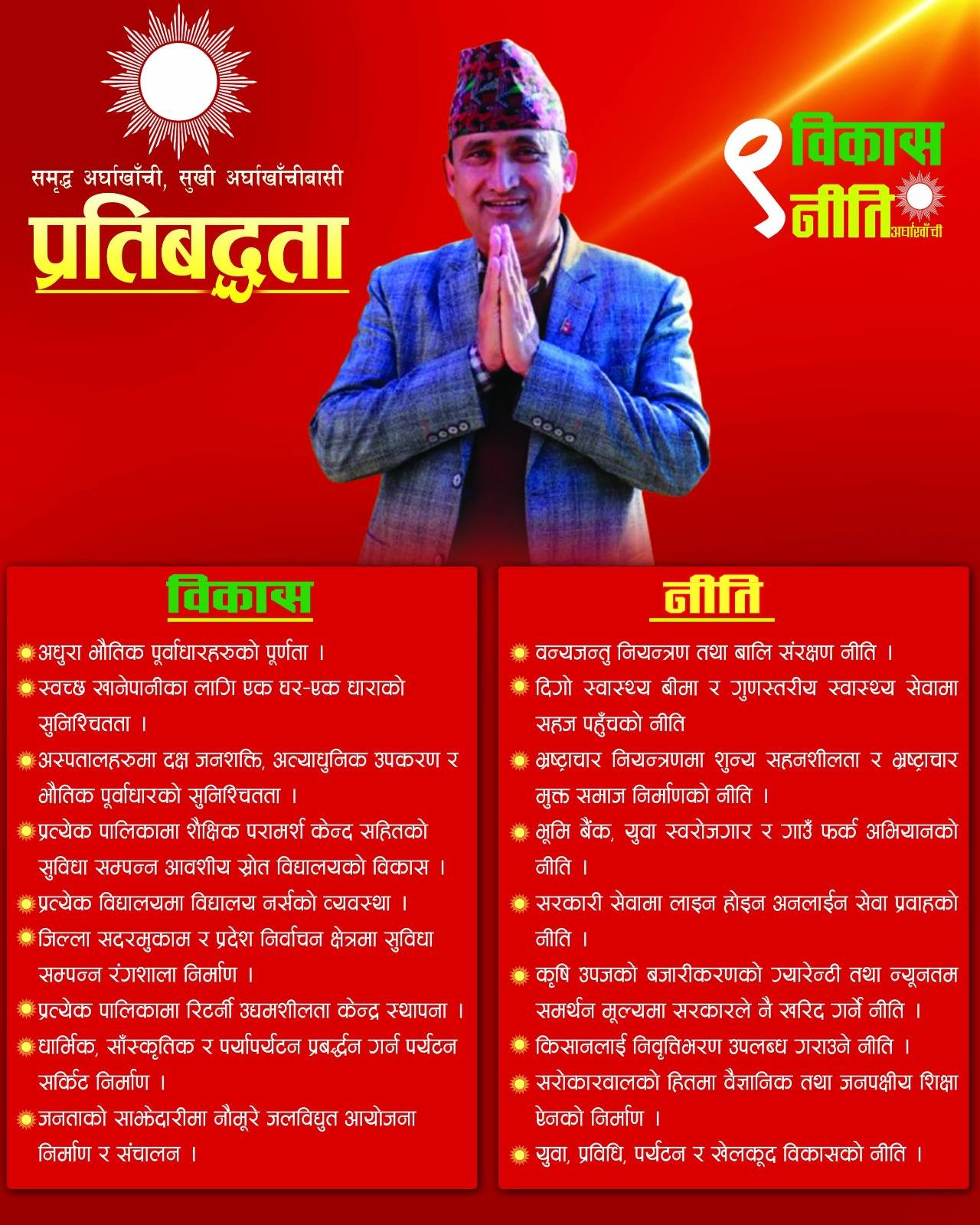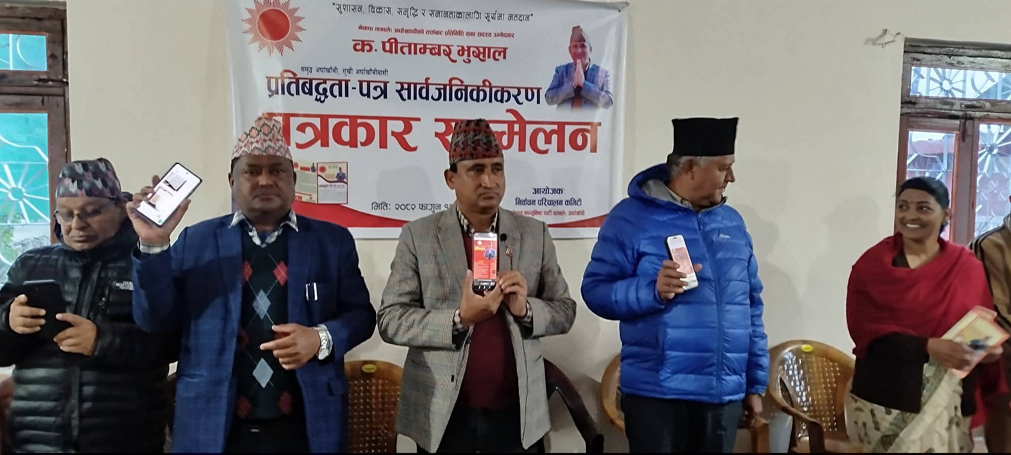 अर्घाखाँची ।नेकपा एमाले अर्घाखाँचीले ‘नौं विकास र नौं नीति’ समेटिएको चुनावी प्रतिबद्धता–पत्र सार्वजनिक गरेको छ । प्रतिनिधि सभा सदस्यका उम्मेदवार पिताम्वर भुसालले सन्धिखर्कमा आयोजित पत्रकार सम्मेलनमा प्रतिबद्धता सार्वजनिक गर्नुभएको हो।