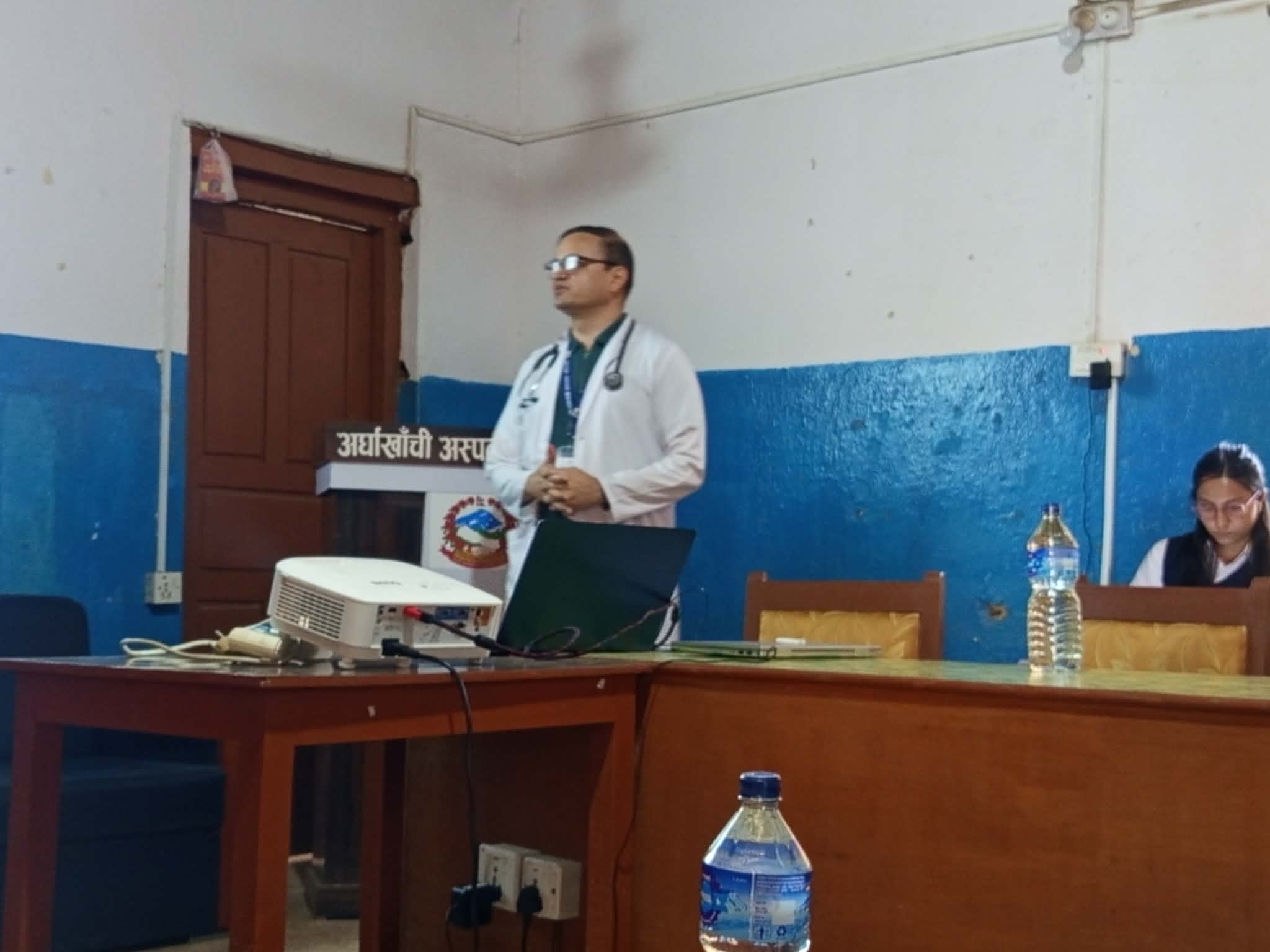 कार्यक्रममा अर्घाखाँची अस्पतालका डाक्टर खगेन्द्र आचार्यले नसर्ने रोग अन्तर्गत मुटु, क्यान्सर, मधुमेह र मृगौला सम्बन्धी विषयमा जानकारी दिनुभएको थियो।